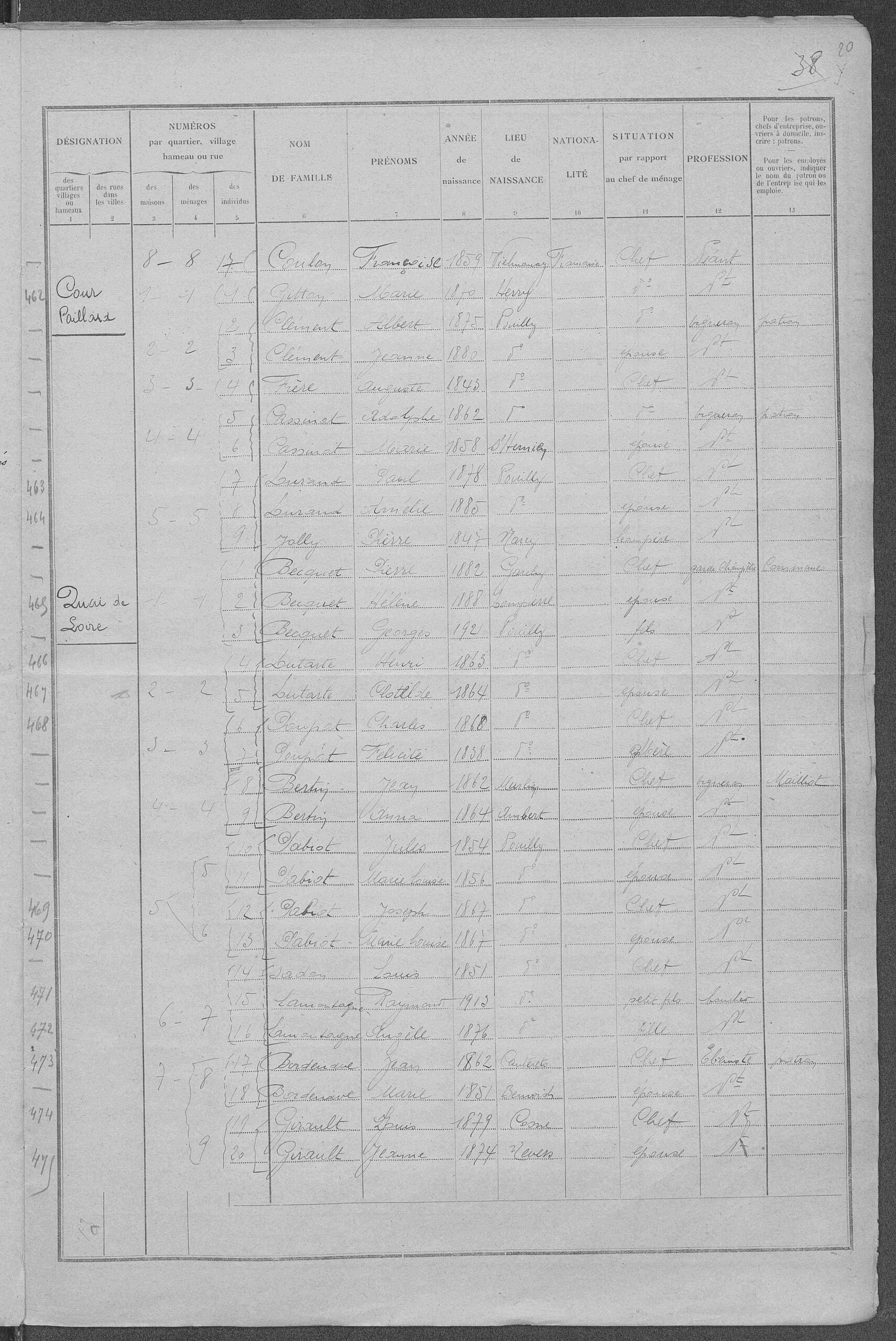 C’est l’occasion de revenir au pays à la quarantaine passée… à Pouilly-sur-Loire. Ils viennent habiter chez Simon, le père CASSINAT. Peut-être que la santé de Simon s’est dégradée ? on sait qu’il décède en 1906 à l’âge de 73 ans.