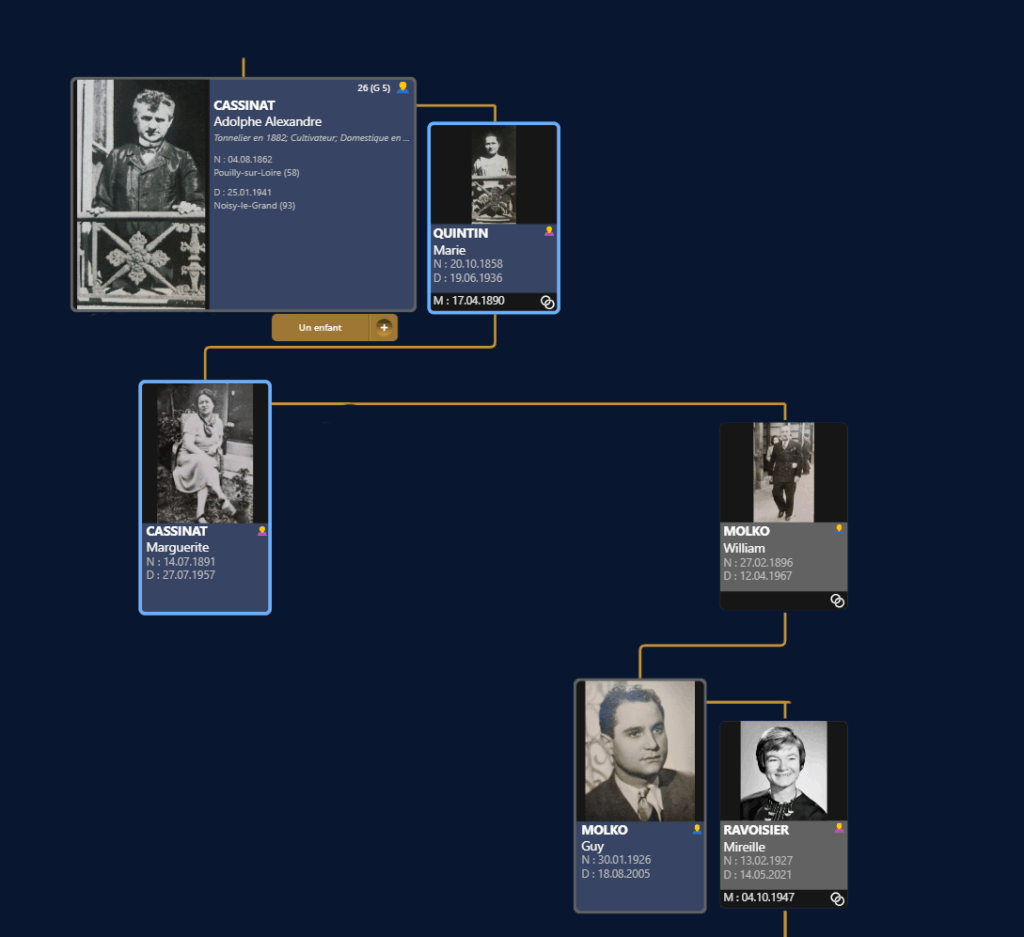 Originaires de Pouilly-sur-Loire et de Mesves-sur-Loire (à quelques km), les familles QUINTIN et MAUROY sont bien implantés dans le secteur… et on plusieurs alliances entre CASSINAT et MAUROY !